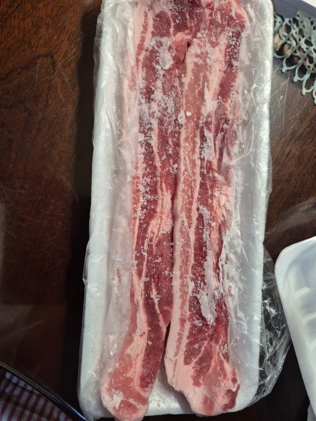 삼겹살이 도톱해서 식감이 좋고 맛이 좋으네요~ 남은것은 나른하게 펴서 냉동시켜놨어요~