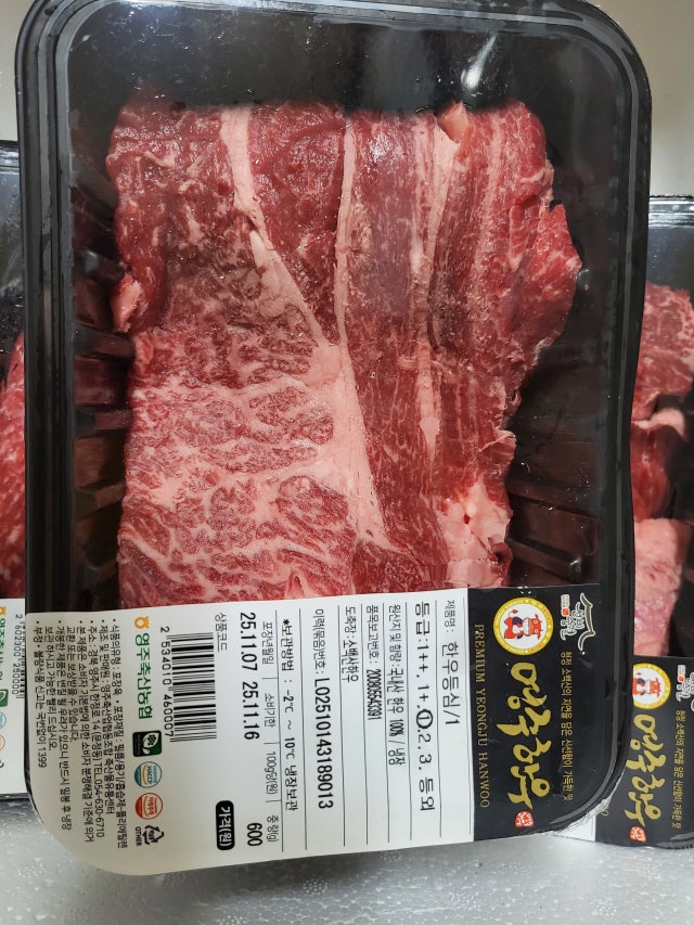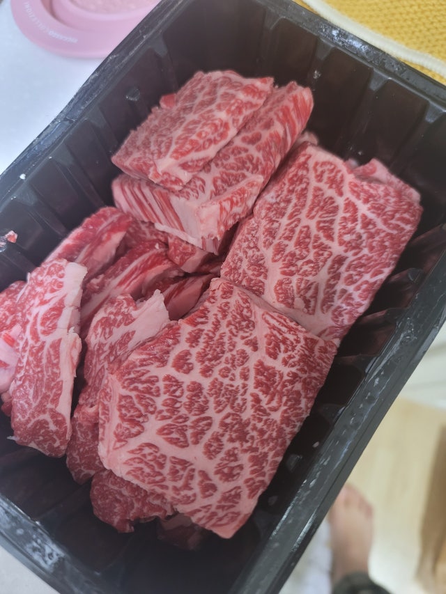 고기가 고소하고 맛있습니다. 이번엔 마블링이 좀 고르지는 않지만 늘 잘 먹고 있습니다.