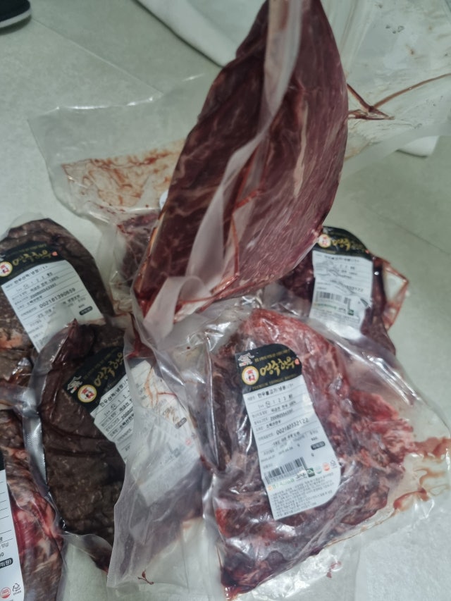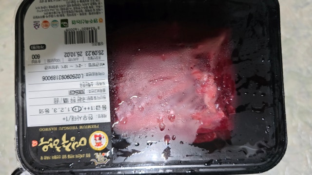 밤 늦게 택배도착했구요 고기가 해동되었어요ㅠ