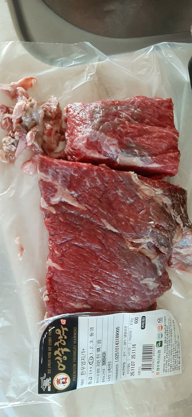 이번에 양지 3팩 할인해서 25,000원에 구입했는데 두2팩은 좋았는데 그중 한팩600그램에서 지방이 제대로 ...